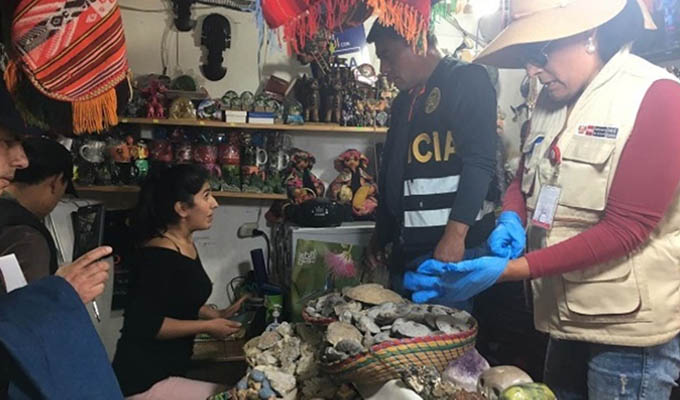 Durante el operativo se intervinieron cuatro puestos, donde el Ministerio de Cultura identificó 646 piezas que eran ofrecidos como suvenires a los turistas nacionales y extranjeros.
