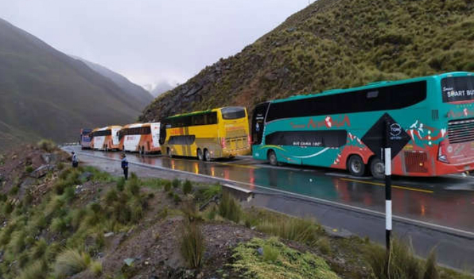 Camiones, autos particulares y buses interprovinciales continúan varados a la altura del kilómetro 122 de la Carretera Central, a la altura de Casapalca, en la provincia de Huarochirí.