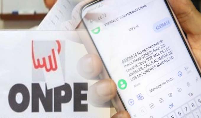 La Oficina Nacional de Procesos Electorales (ONPE) informó que mediante el envió de un mensaje de texto (SMS) al 6673 colocando el número de su DNI podrán informarse, a través de sus celulares, sobre su local de votación y si salieron sorteados miembros de mesa. Mediante esta iniciativa los más de 24 millones de electores de todo el país se beneficiaran.