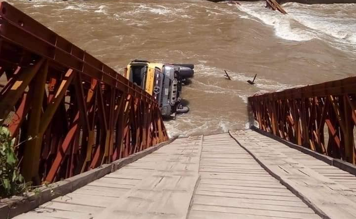 Producto de las intensas lluvias y el incremento del caudal del río Apurimac, esta mañana colapsó el puente Pillpinto, que une las provincias de Cusco-Acomayo-Paruro colapsó tras el paso de un camión volquete.