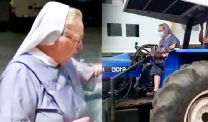 En Chimbote, la madre superior de las Hermanas de San Vicente de Paúl, la hermana Rebecca Frick, se ha vuelto viral en redes sociales, luego que fuera vista conduciendo un tractor con el que recorre las calles de Moro. El propósito de esta monja es desinfectar las calles de Moro para evitar la propagación del coronavirus.
