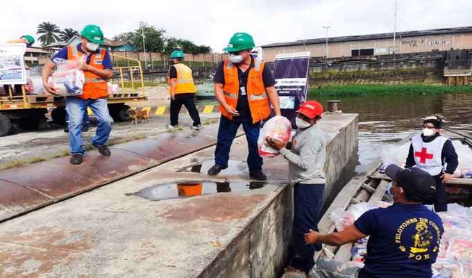 La Cruz Roja Peruana y la Empresa Nacional de Puertos (Enapu) unieron esfuerzos para entregar un total de 1200 kits de alimentos a familias vulnerables de la ciudad de Iquitos, región Loreto.