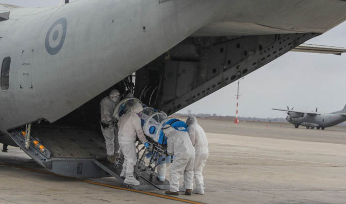 El paciente viajó en un avión de la Fuerza Aérea del Perú (FAP) dentro de una cámara de aislamiento con presión negativa, que lo protegió de cualquier infección, y los pilotos y tripulantes de la nave portaron equipos de bioseguridadespeciales.