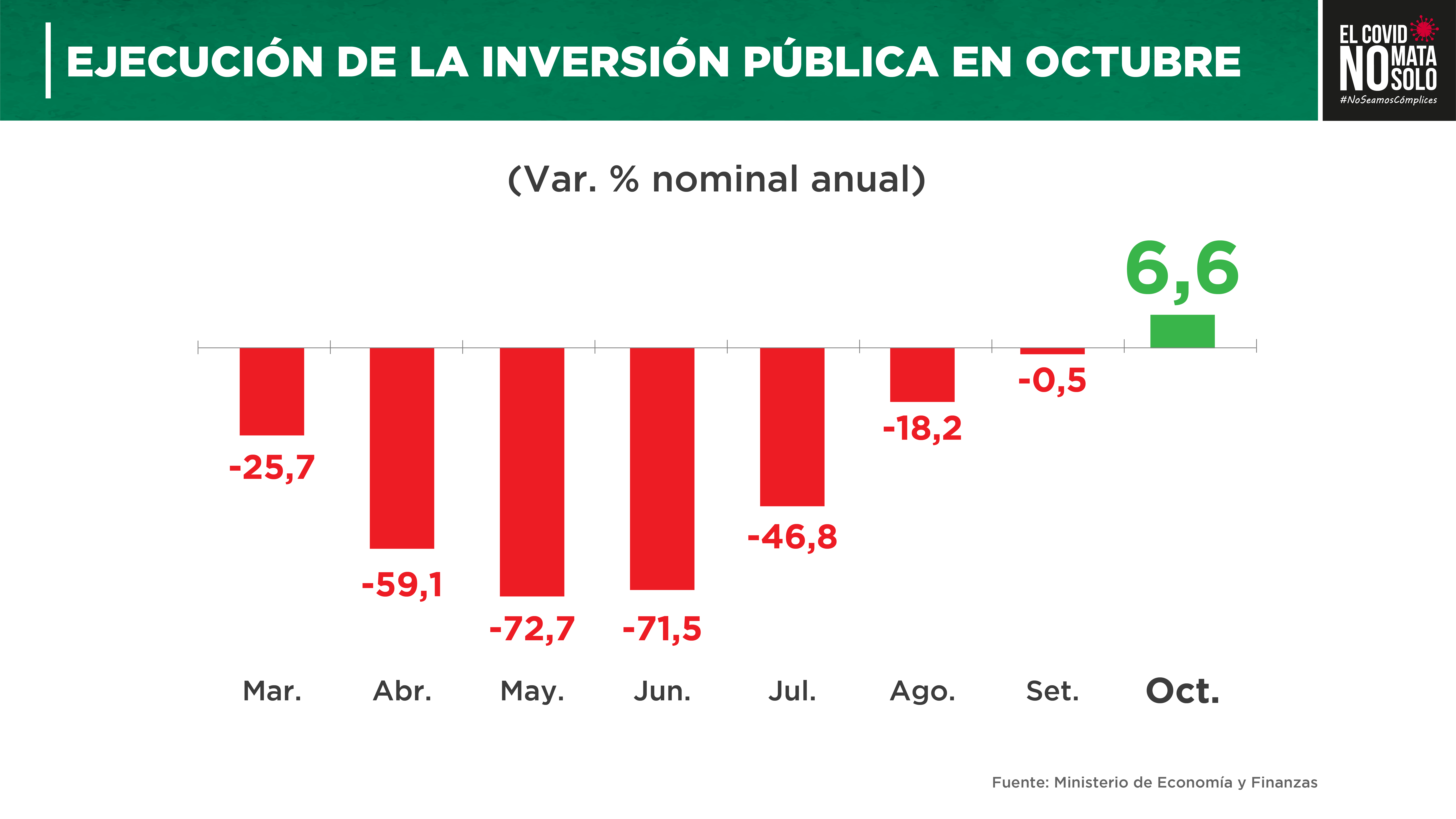 “A partir del mes de julio, con la reactivación y los protocolos, comenzamos a mejorar. En octubre el crecimiento ha sido del 6.6 % respecto a octubre del año pasado, que no había pandemia. Es algo sumamente positivo”, indicó el presidente.