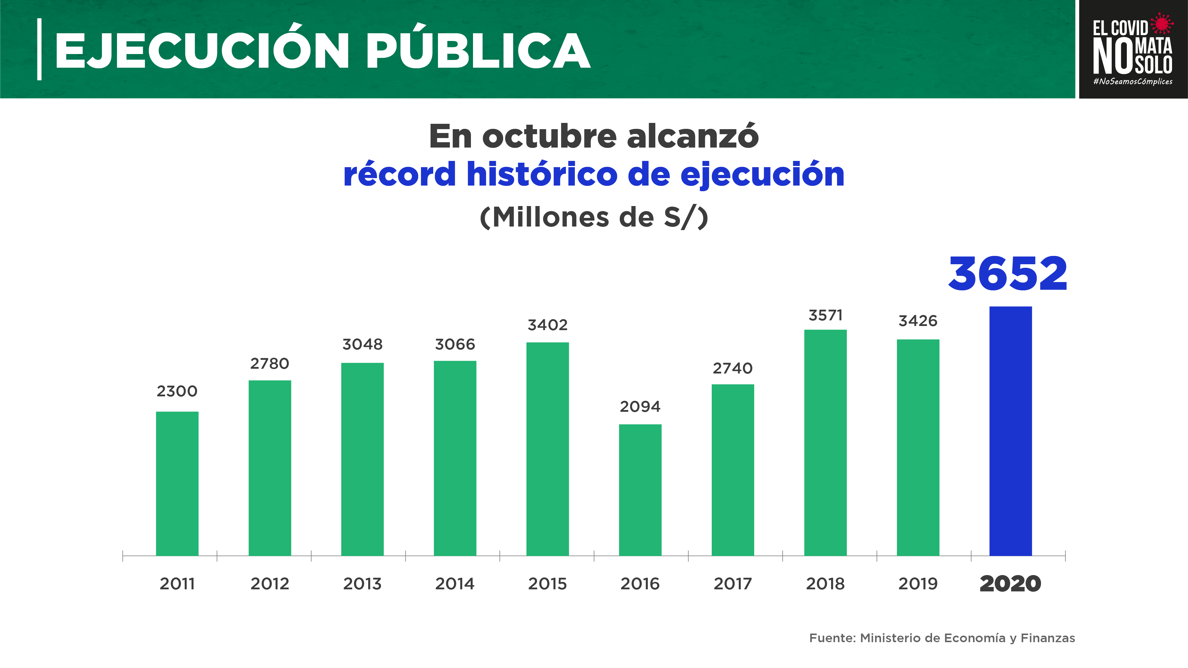 Además, añadió que se ha logrado un récord en ejecución pública. “Octubre logró un récord histórico de ejecución, llegó a 3652 millones de soles. Nunca hemos invertido tanto en un mes de octubre como en el mes pasado”, indicó durante su discurso.