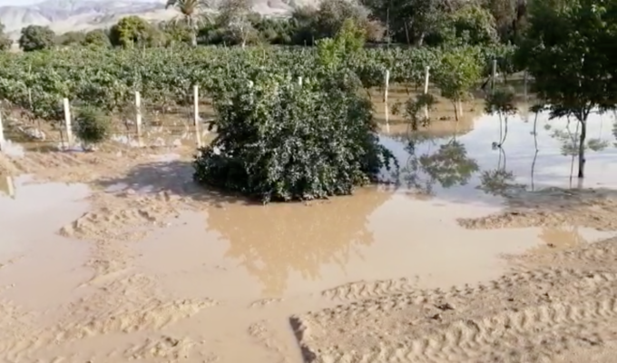 Ochenta agricultores resultaron afectados tras el desborde del río Ica, a la altura del centro poblado de Pinilla, distrito de Ocucaje, región Ica.