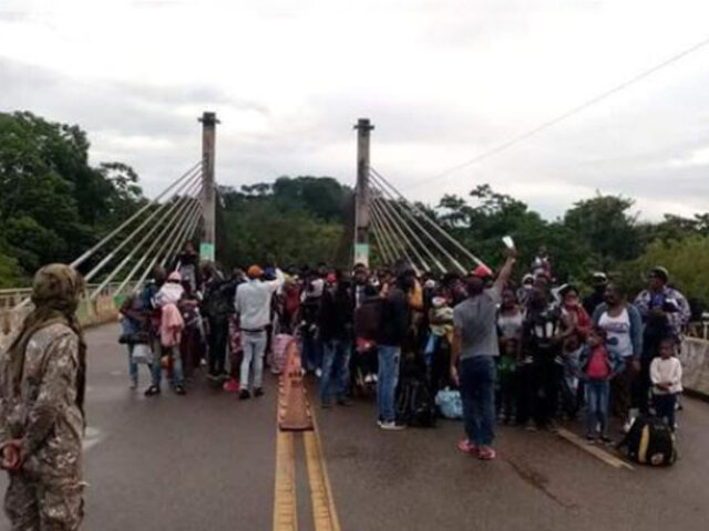 Aproximadamente 450 migrantes, en su mayoría haitianos, llevan seis días varados intentando de ingresar a Perú desde Brasil por un puente fronterizo en la Amazonía.