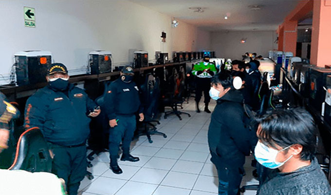 La Municipalidad Provincial de Huancayo informó que pasada las 9:30 a.m., intervinieron el local "Lan Center Ayala Gaming", lugar en el que se encontraron a 17 personas, 5 de ellas menores de edad, en plena jornada de juegos "on line", pese al toque de queda.