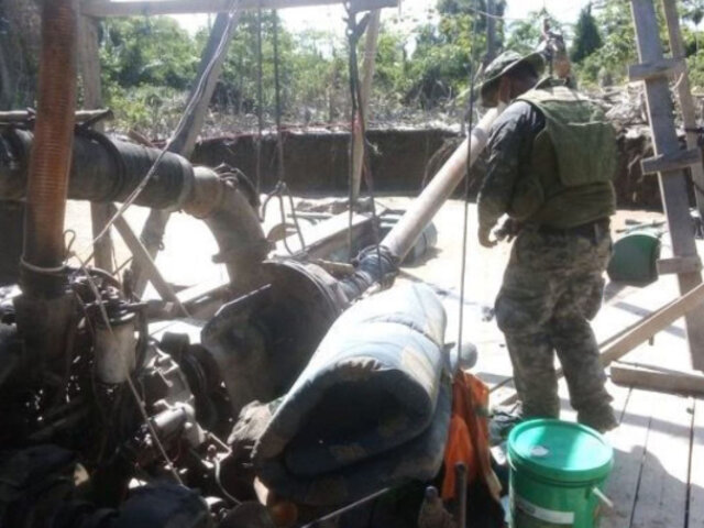 Se encontró 23 motores chinos, 5 motores Volvo, un motor Nissan, 23 bombas de succión, 20 caballetes, 20 tolvas, 23 balsas carrancheras, 200 metros de tubos de PVC, 70 metros de manguerote, 13 tracas hidráulicas, 125 paños de alfombra, 13 lanzas de fierro y 1126 galones de combustible.