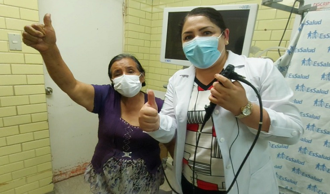 Detalló que la operación se realizó con la ayuda del equipo de fibro broncoscopio flexible, un aparato que logró extraer el hueso de la tráquea de la paciente. La intervención duró aproximadamente hora y media, y fue bajo sedoanalgesia; es decir, no necesitó estar entubada, ni se realizó ningún corte quirúrgico.