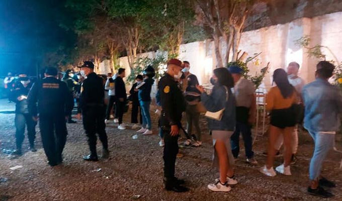 Al ingresar, las autoridades encontraron a las personas, hombres y mujeres, bailando y tomando licor, sin mascarillas y sin respetar el distanciamiento social, recomendación importante para evitar los contagios de la Covid-19.