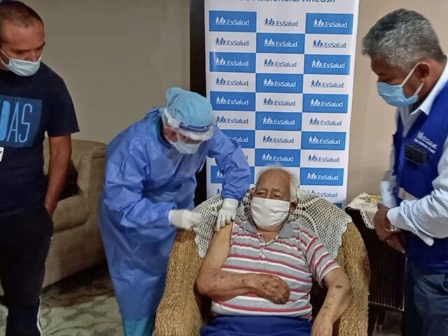 En Áncash, adulto mayor de 100 años se convirtió en el primer paciente del Programa de Atención Domiciliaria (Padomi) del ámbito de la Red Asistencial de EsSalud de dicha región, en ser inmunizado contra el COVID-19 en su vivienda.
