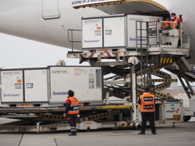 Este cargamento llegó al aeropuerto internacional Jorge Chávez en un vuelo de la aerolínea Air France. El ministro de Salud, Hernando Cevallos, acompañó al jefe de Estado. El Perú recibirá en setiembre la cifra récord de más de 12.8 millones de dosis, según informó el canciller Óscar Maúrtua.