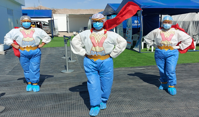 Las enfermeras de EsSaludMoquegua se convirtieron en la “Mujer Maravilla”, para darle mayor alegría al proceso de vacunación contra el coronavirus en el país. Ellas decidieron vestirse de superheroinas teniendo en cuenta que la Covid-19 ha afectado a miles de familias, por lo que con la iniciativa buscan que los pacientes puedan relajarse mientras son vacunados.