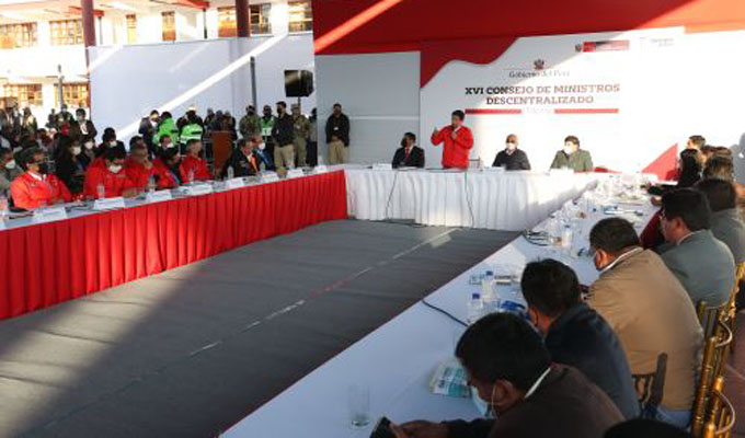 El presidente Pedro Castillo Terrones liderará hoy en Arequipa, el XVII Consejo de Ministros Descentralizado. Durante esta visita de trabajo, el mandatario participará también en el inicio de obras de un proyecto de recarga hídrica en Coporaque.