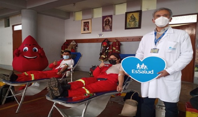 El Banco de Sangre del Hospital Rebagliati recibió donación voluntaria de 128 bomberos en la Compañía de Bomberos de Jesús María Nº 202, con el fin de beneficiar a los pacientes más críticos. Este año, gracias a los donantes, este nosocomio ha podido salvar un promedio de 10 mil pacientes de diversas especialidades médicas como hematología, oncología, pediatría, emergencia, trasplante, entre otros.