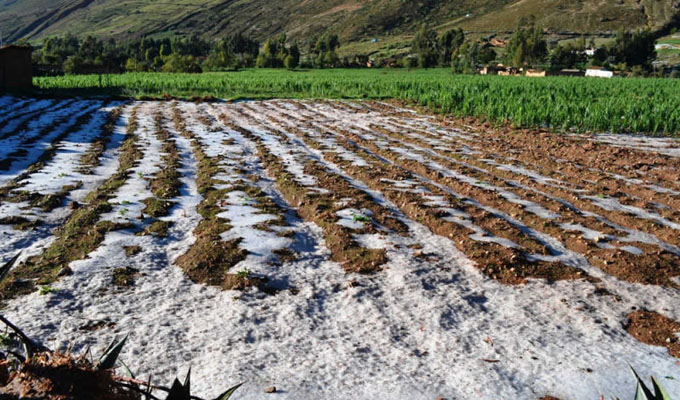 “El granizo de ayer (viernes) era fuera de lo común. El tamaño del hielo parecía piedras y terminó destrozando las lechugas, manzanilla, papa, entre otros, que sembramos y cosechamos cada dos o tres meses”, manifestó el comunero de Carhuapaccha, David Usca Luyo.