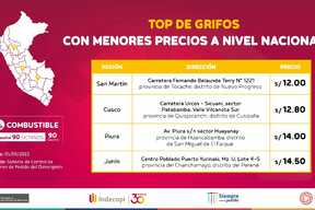 El precio más accesible del gasohol de 90 octanos se encontró en: San Martín, provincia de Tocache, distrito de Nuevo Progreso (S/12.00); Cusco, provincia de Quispicanchi, distrito de Cusipata (S/12.80) y Piura, provincia de Huancabamba, distrito de San Miguel de El Faique (S/14.00); y Junín, provincia del Chanchamayo, distrito del Perené (S/14.50).