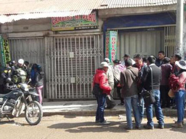 El cambista D.S.F. (65) fue asaltado por dos “Marcas”, en la intersección de la avenida Almirante Miguel Grau con jirón Lampa, de la ciudad de Juliaca. La víctima contó que los delincuentes le lograron arrebatar 20 mil dólares y 50 mil soles.