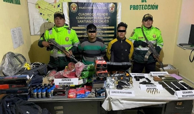 También se les halló objetos que fueron reconocidos por los agraviados como de su propiedad. Los intervenidos, armas de fuego y especies recuperadas fueron puestos a disposición de la comisaría de Santiago de Chuco para las diligencias de ley.
