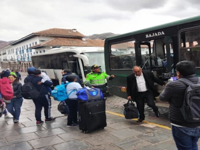 Desde el aeropuerto teniente Alejandro Velasco Astete hasta la Plaza de Armas de la ciudad de Cusco, turistas nacionales, extranjeros y cusqueños afectados por el paro agrario están siendo trasladados en buses de la VII Macro Región Policial de esta región.