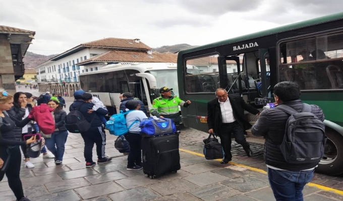 Desde el aeropuerto teniente Alejandro Velasco Astete hasta la Plaza de Armas de la ciudad de Cusco, turistas nacionales, extranjeros y cusqueños afectados por el paro agrario están siendo trasladados en buses de la VII Macro Región Policial de esta región.