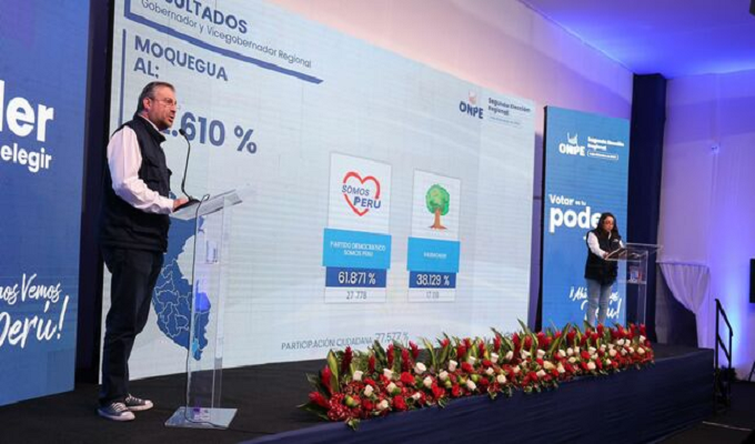 ONPE presenta primer avance oficial de resultados de la segunda elección regional
