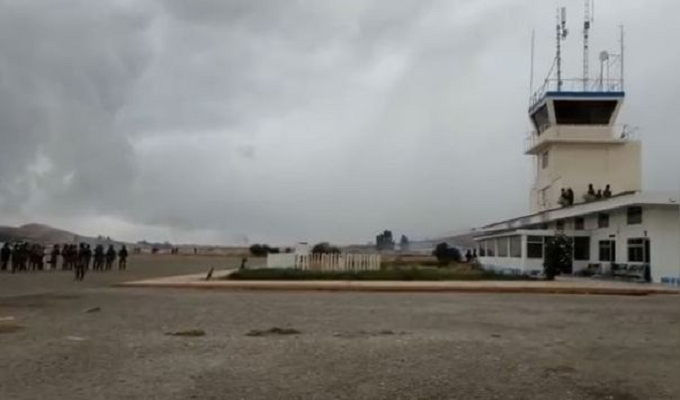 Un grupo de manifestantes bloqueó los accesos al Aeropuerto de Andahuaylas, en la localidad de Huinchos.
