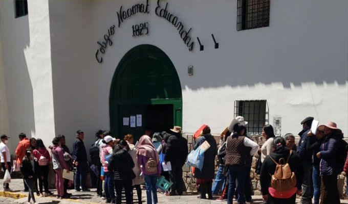 Desde hace varios días, decenas de padres de familia realizan largas colas en los exteriores del Colegio Nacional Educandas en Cusco. Las filas se extienden por dos cuadras y se registran desde horas de la madrugada.