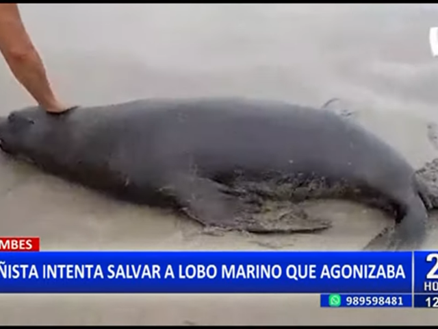 Tumbes: Bañista intenta salvar a lobo marino que agonizaba en la orilla del mar