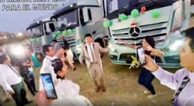 Huancayo: Pareja se hace viral tras recibir un camion de regalo de bodas