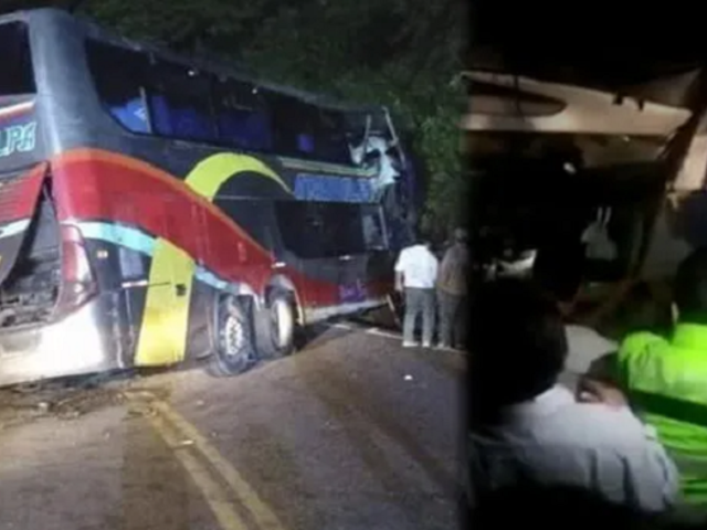Un bus interprovincial con sesenta pasajeros, sufre terrible accidente, quedando al borde de un precipicio, en medio de la oscuridad, de una carretera en Cajamarca.