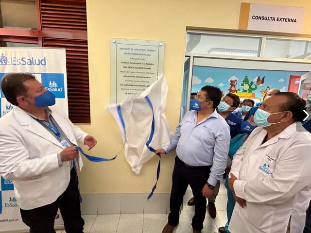 En una importante visita a la región San Martín, el presidente ejecutivo del Seguro Social de Salud (EsSalud), Dr. Arturo Orellana Vicuña, inauguró los modernos consultorios de pediatría y ginecoobstetricia en el Hospital I Alto Mayo de Moyobamba, con lo que se proyecta realizar 1000 atenciones más por mes en ambas especialidades, que tienen alta demanda en la localidad.