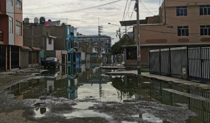 Las calles afectadas son Luis Castilla, Juan Ordoñez y Wilder Rodríguez. En este sector está el colegio Félix Tello Rojas, los estudiantes deben soportar el olor nauseabundo y la gran cantidad de zancudos que han aparecido.