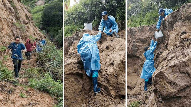 Ante esta situación, el personal de salud ha tenido que recurrir a largas caminatas y trepadas por cerros para poder atender a la población afectada.
