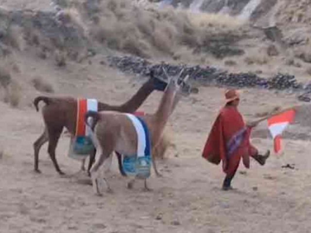El video, que dura poco más de 30 segundos, muestra cómo nuestro compatriota se coloca en frente de los auquénidos portando una bandera peruana y luego se pone a marchar, haciendo que los animales le sigan el paso.