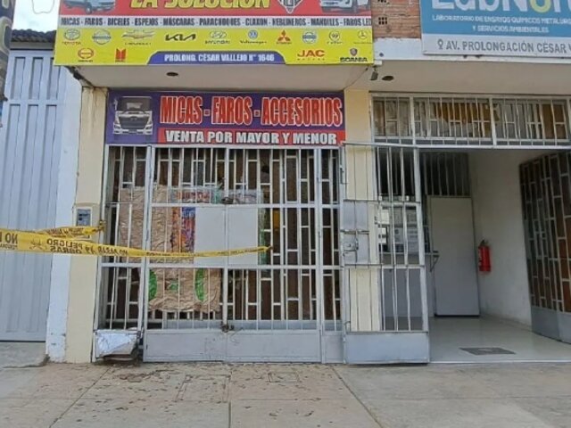 El hecho ocurrió en la cuadra 16 de la Prolongación César Vallejo, el establecimiento sufrió daños considerables: la reja de seguridad quedó afectada y los vidrios de las ventanas y mostradores fueron destruidos.