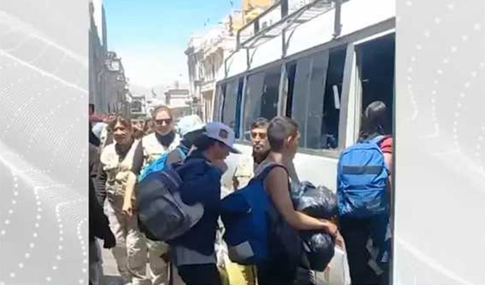 Tras los trámites de ley, los extranjeros, cinco colombianos, dos venezolanos y un boliviano, fueron trasladados inmediatamente por agentes de Migraciones hasta a la localidad fronteriza de Desaguadero, en la región Puno, para luego ser expulsados del Perú.