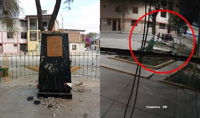 Las cámaras de seguridad del parque revelan que el hurto se produjo al promediar las 4:30 a.m.; en las imágenes se ve a dos hombres subiendo el busto a un mototaxi y retirándose.