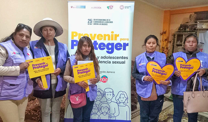 En el altiplano puneño, Ana Calizaya Quispe, mentora voluntaria del programa “Mujeres acompañando mujeres”, acompaña a madres quechuahablantes y aimarahablantes de Juliaca. Ella ofrece apoyo en su lengua originaria y las impulsa a no tolerar la violencia. “Mi motivación es generar un cambio en cada mujer que acompaño. Siempre las aconsejo que deben emprende para buscar su autonomía económica”, afirma.
