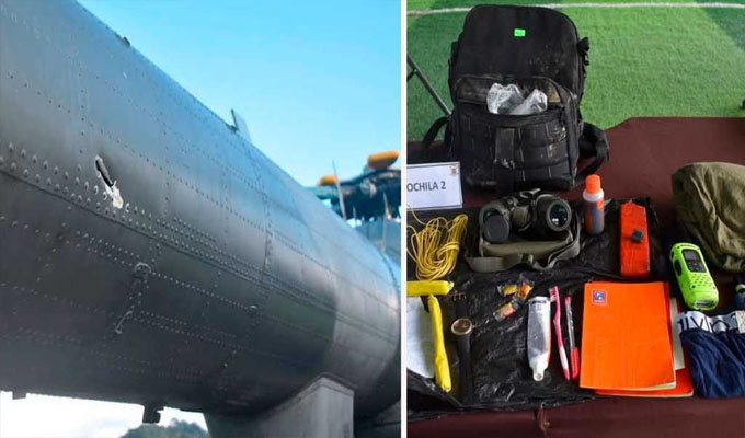 Disparos de ametralladora impactaron en la cola del helicóptero de la FAP, sin causar daños en la tripulación. En el operativo se logró incautar en el campamento subversivo, seis mochilas con material relacionado a actividades delictivas.