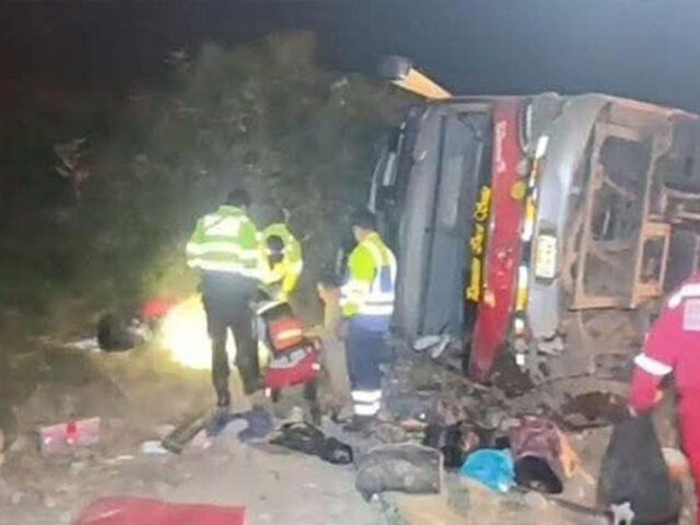 Según primeros informes, esta madrugada un ómnibus interprovincial se volcó a la altura del kilómetro 192 de la carretera de la Panamericana Sur, en el sector Tambo de Mora, en la región Ica.