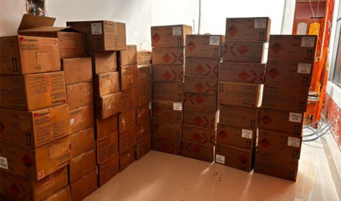 Al interior del vehículo, los agentes encontraron 64 cajas de explosivos. Entre los materiales incautados había 9,120 unidades de emulsión encartuchada, 7,920 unidades de dinamita de procedencia extranjera y una caja de cordón detonante.