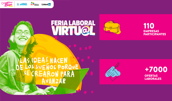 Entre el 5 y 7 de septiembre, Nestlé, con el apoyo de más de 110 empresas aliadas, realizará una nueva edición de la Feria Laboral Virtual, donde LinkedIn, la mayor red profesional online a nivel mundial, jugará un rol clave. Ofrecerán más de 100 vacantes a jóvenes de Perú, y 10 000 en toda Latinoamérica. Esta acción se da en el marco del X Encuentro de Jóvenes de la Alianza del Pacífico, que este año se llevará a cabo en Colombia, que espera reunir a más de 3 000 participantes de Perú, Colombia, Chile y México.
