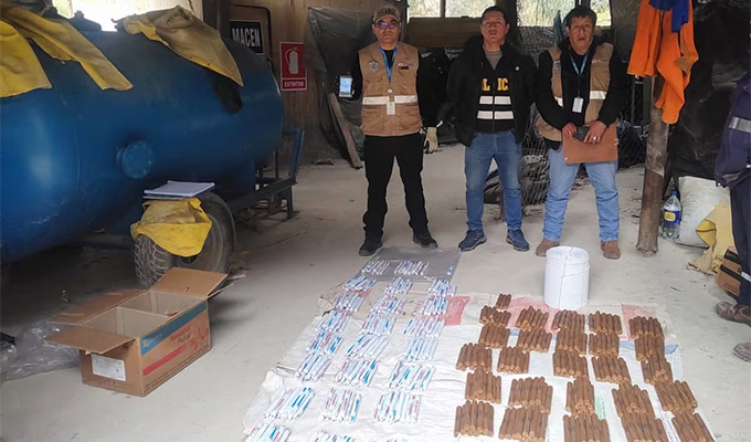Las autoridades incautaron 253 cartuchos de dinamita, 500 metros de mecha de seguridad y 232 cartuchos de emulsión encartuchada. También intervinieron a un hombre de 40 años que cuidaba el material.