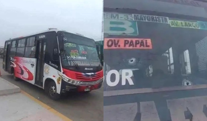 Dos sujetos en motocicleta dispararon contra un bus cuando circulaba por la avenida Grau. El vehículo recibió cuatro impactos de bala, pero no hubo heridos.
