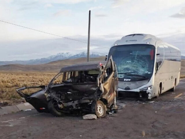 Según primeras informaciones, al menos cinco personas fallecieron tras un violento choque frontal entre una combi y un bus de turismo en la vía Juliaca–Arequipa, distrito de Santa Lucía, provincia de Lampa, región Puno.