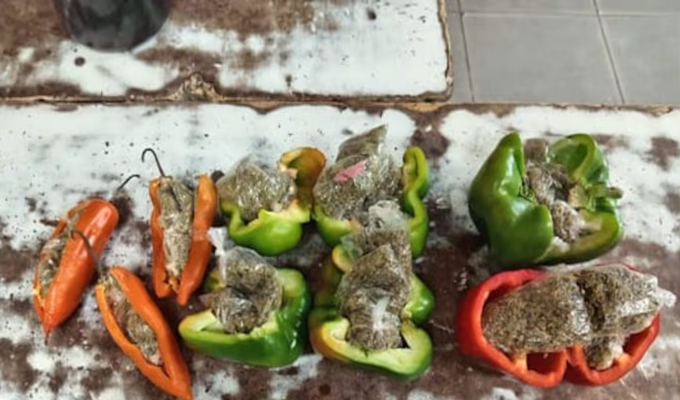 De acuerdo al trabajo de los efectivos del INPE, un pimentón llamó su atención, por lo que, decidieron inspeccionarlo, dándose con la sorpresa que en el interior del producto había tres bolsas de polietileno que tenía sustancias ilícitas.