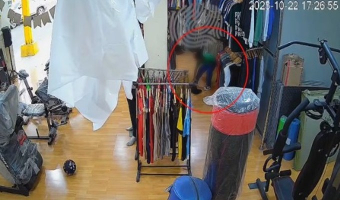 Cámaras de seguridad captaron al menor llevándose prendas del establecimiento.