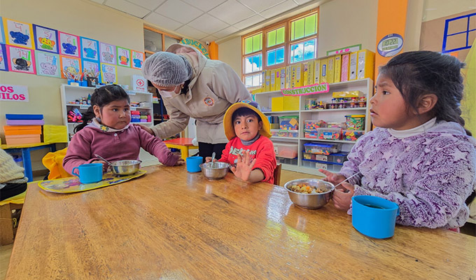 Las autoridades locales de las provincias de Azángaro, Carabaya, Chucuito, El Collao, Huancané, Lampa, Melgar, Moho, Puno, San Román y Yunguyo fortalecieron sus capacidades en temas relacionados con la prestación del servicio alimentario, la vigilancia social y las buenas prácticas de almacenamiento e higiene.